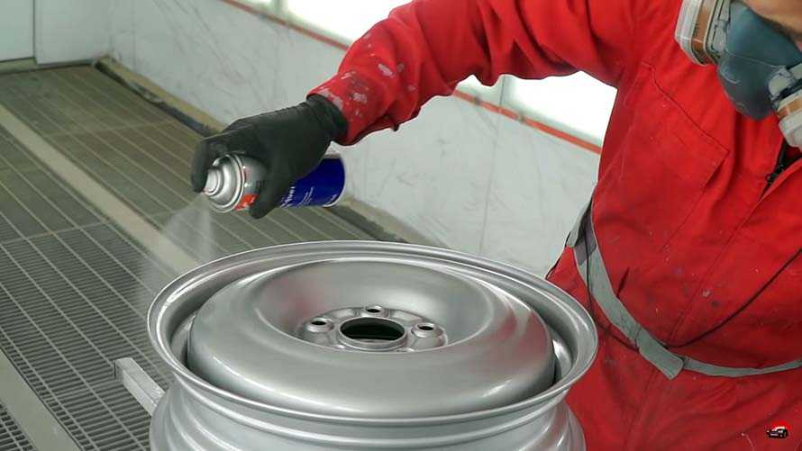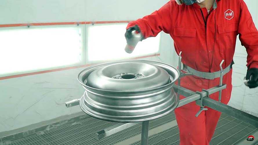 Это финишная обработка в процессе покраски дисков. Нанесение лака ничем не отличается от предыдущих окрасочных операций. Чтобы литой диск приобрел необходимый блеск будет достаточно всего двух слоев лака.