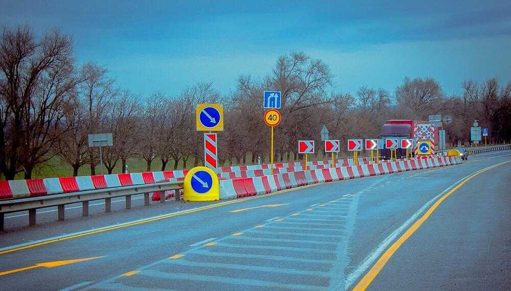 Высокая среднесуточная интенсивность движения транспорта требует проведения работ в ночное время. При этом все зоны и расположенные на них знаки обязательно должны освещаться. А для того чтобы водитель гарантированно заметил указатели в сложных условиях движения, их необходимо продублировать на разделительных полосах, слева от дорожного полотна или прямо на дороге.