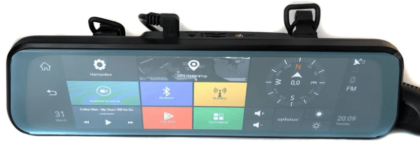 Регистратору были подарены сенсорный дисплей диагональю 9,66 дюймов, Wi-Fi-модуль и GPS-информатор. Питание устройства осуществляется от аккумулятора или бортовой сети. В наборе поставляется все необходимое для монтажа.