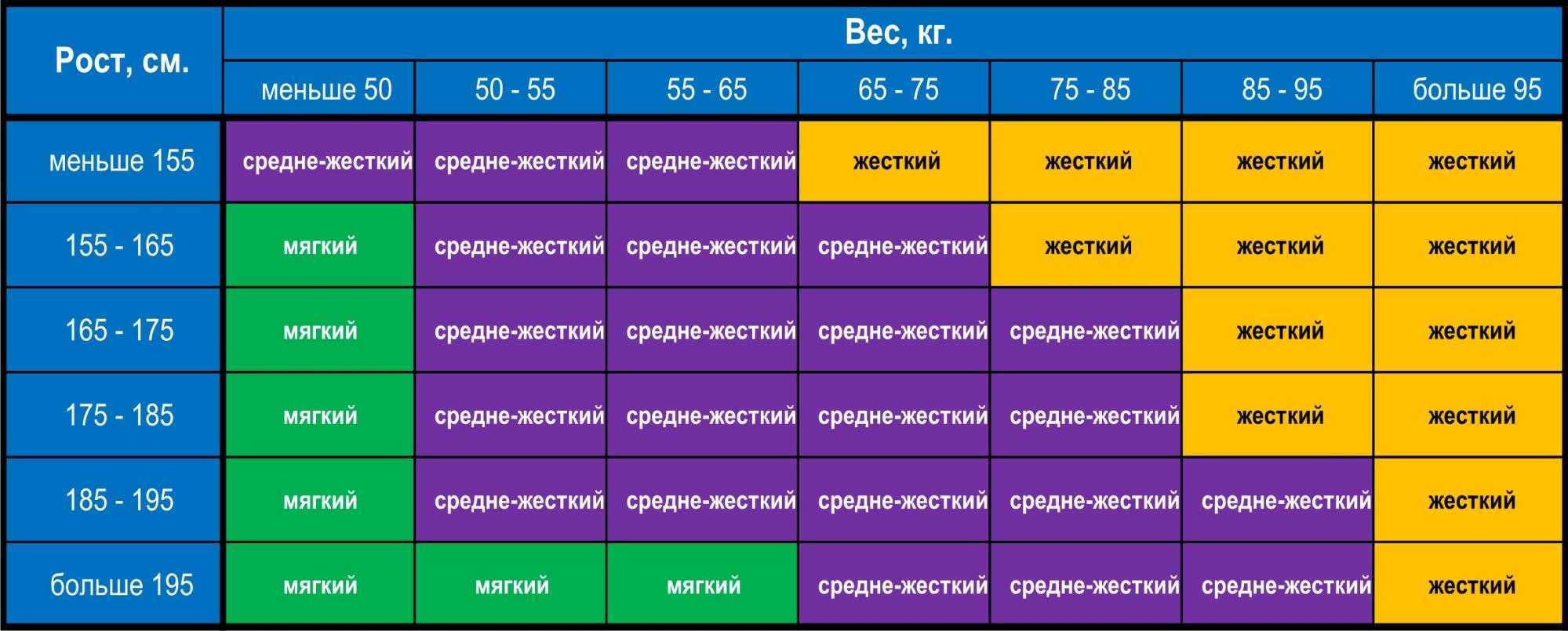 Чтобы подобрать идеальную степень жесткости, воспользуйтесь специальной таблицей.