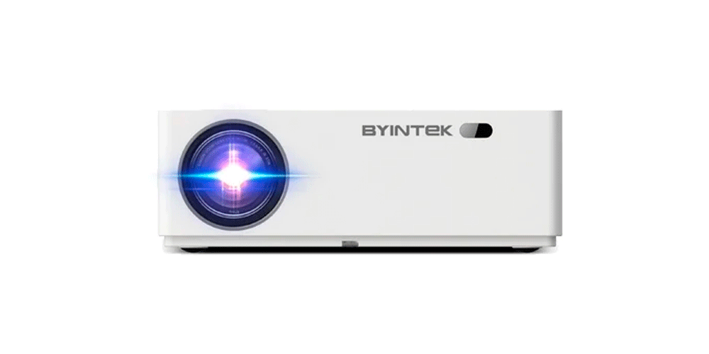Третье ступеньку ТОПа занимает BYINTEK К20. Проектор выполнен в обычном белом цвете и стандартном, ничем не примечательном стиле. На задней части корпуса расположены разъёмы: 1 USB, 1 SD, два HDMI, 1 VGA, 1 AV и один 3.5 аудиовыход. LCD-лампа с разрешением 1920х1080p Full HD и поддержкой 4К, яркостью 10000 люменов и контрастностью 15000:1 на данный момент делает эту модель самой предпочтительной из перечисленных, но хотел бы отметить один параметр – срок службы лампы ограничен на отметке 30 000 часов.