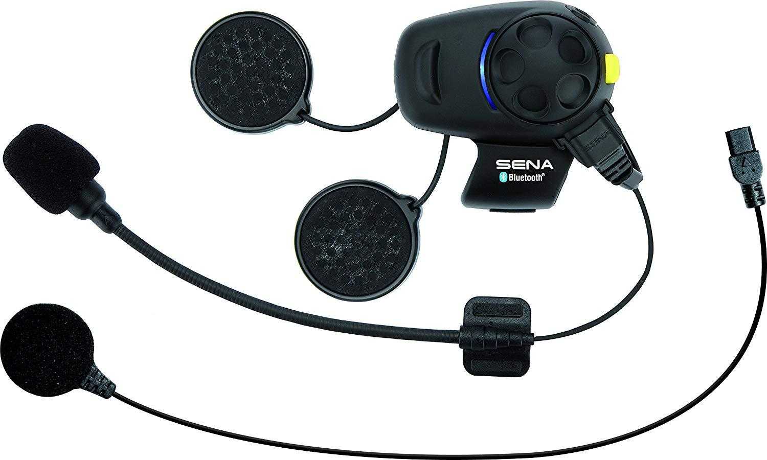 Довольно старая модель, впоследствии дополненная функцией FM-радио, что обозначено в названии. Радио, как и у конкурентов, позволяет автоматически выбирать волну и запоминать сразу несколько станций. Гарнитура может быть подсоединена через Bluetooth 3.0 всего к одному телефону и работать максимум с ещё одним устройством. Зато, в отличии от Scala Rider Q1, Sena SMH5-FM может работать с гарнитурами других брендов, а радиус действия, по заявлениям производителя, вообще рекордный для своего класса, целых 700 метров.