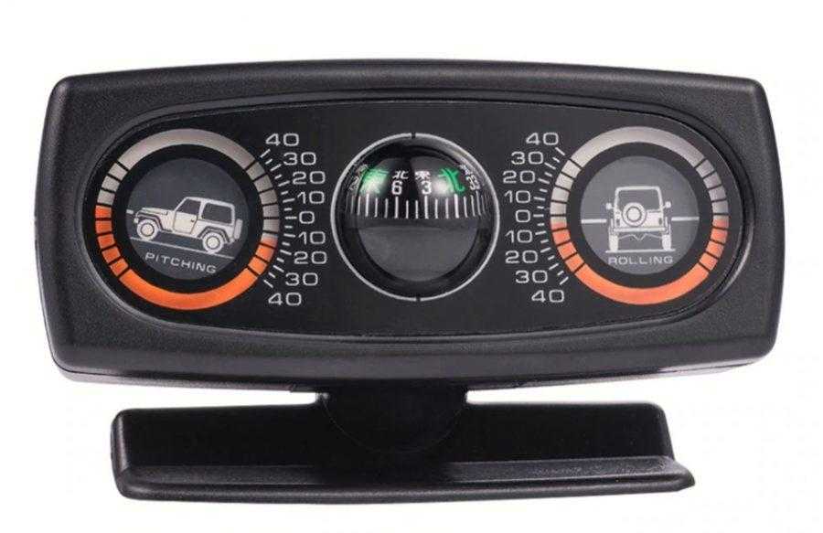 Рейтинг популярных товаров для авто открывает небольшой автомобильный компас, который призван показать уровень наклона машины, когда она спускается или поднимается в гору. Такие параметры важны, чтобы тестировать возможности автомобиля в разных условиях. Например, при каком угле наклона сработает сигнализация. Прибор выполнен в пластиковом корпусе и оснащен регулируемой подставкой. Могут возникнуть сложности с креплением к приборной панели, потому что клеящая поверхность прилегает неплотно.