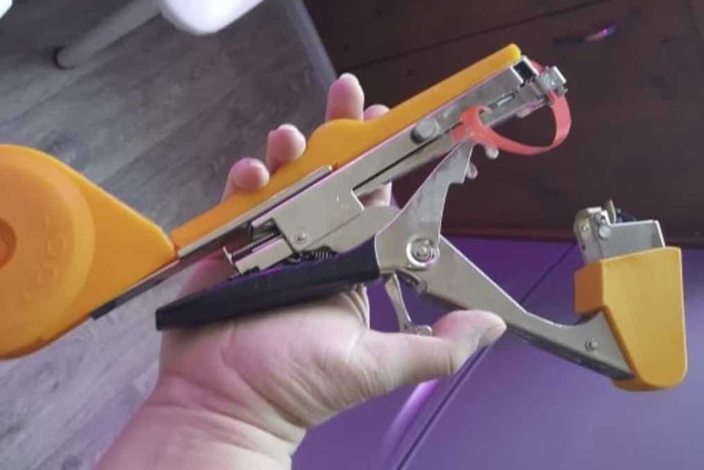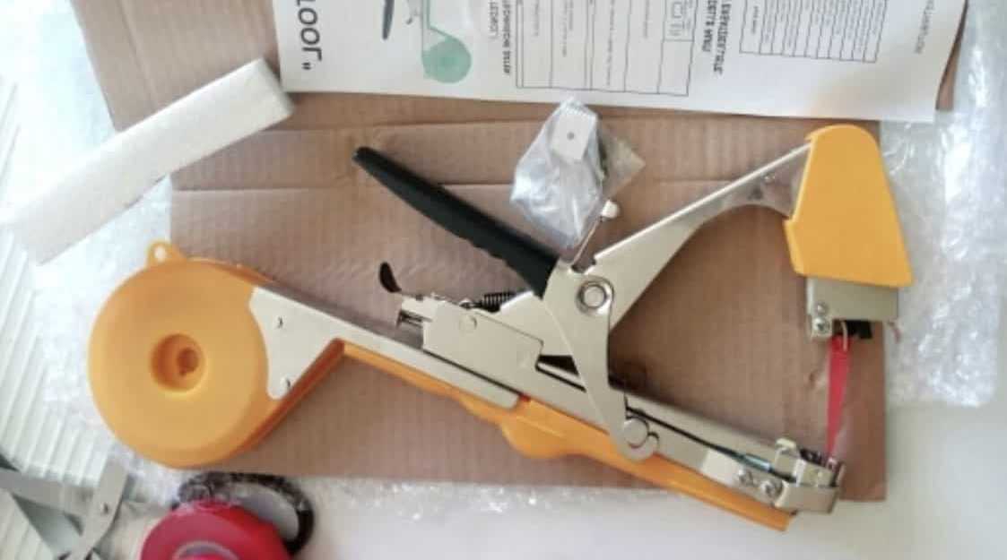 Теперь можно забыть про подвязку помидор ленточками! Китайцы выпускают вот такую удобную штуковину с подобием изоленты для подвязывания растений 2 нажатиями: полунажатие натянет ленту, а полное нажатие отрежет и обхватит лентой ствол. В полном комплекте приходит 11 лент (10 запасных и 1 в самом Tapetool), скобы и запасной нож с пружиной.