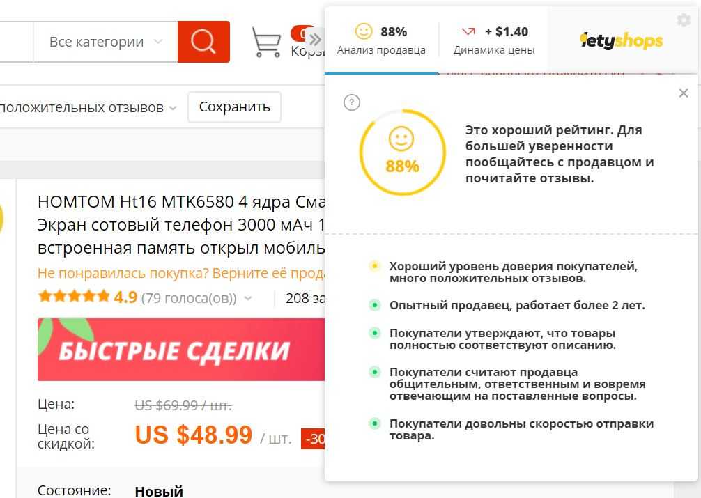 Во – вторых, чтобы получить дополнительный кэшбэк и проверить продавца на Aliexpress лучше воспользоваться приложением LetyShops.