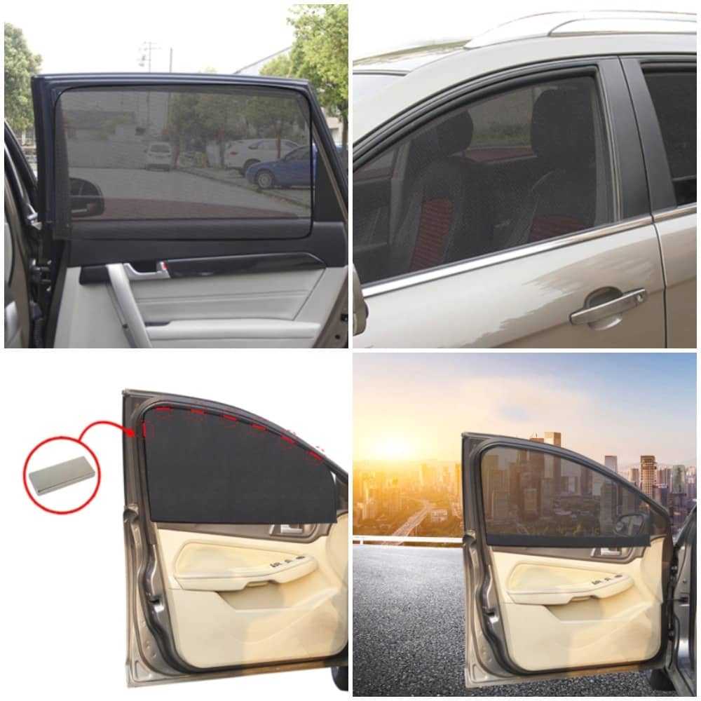 Назначение – защита боковых окон авто от солнца. Материал блокирует УФ лучи, препятствует перегреву воздуха в салоне. При этом видимость остаётся хорошей. Крепится шторка к металлической раме машины с помощью магнитов. Модель подходит на любую марку. Ткань сетчатая. Цвет – чёрный. Товар – один из лидеров продаж.