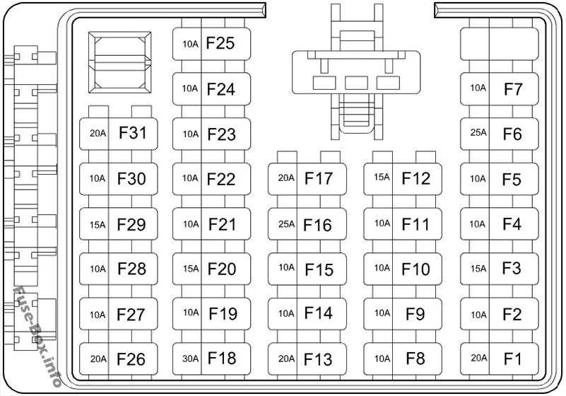 | F31 | 20А Электродвигатель переднего стеклоочистителя, реле стеклоочистителя, электродвигатель омывателя |