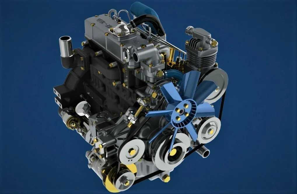Основной проблемой мотора из трех цилиндров, была его высокая вибрация из-за неуравновешенности работы. Проблему решили, создав коленчатый вал, с встроенными компенсаторами дисбаланса. Мотор ММЗ-3LD с мощностью 35 лошадей, объем его 1,6 литра диаметр гильз 87 миллиметров, поршневой ход – 90 миллиметров. Наибольший вращающий момент – 100 Нм, обороты 1700 в минуту.
