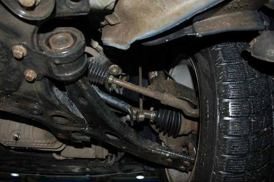 - Аккуратно выкрутить гайку с рулевого наконечника, а также отсоединить рулевую тягу от ПК.