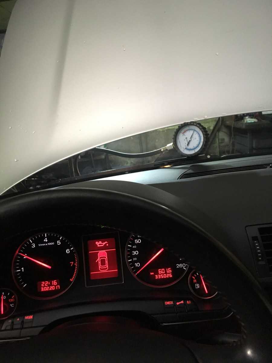 Точная цифра давления масла в системе лучше всяких лампочек расскажет о состоянии маслосистемы. Принцип замера напора смазки мало чем отличается от ВАЗовских «зубил». Достаточно иметь манометр и штуцер, который можно плотно ввинтить вместо датчика давления, отсылающего показания на приборную панель. Атмосферы или другие единицы измерения снимаются на работающем двигателе на горячую в двух режимах: на холостом ходу и определенных оборотах.