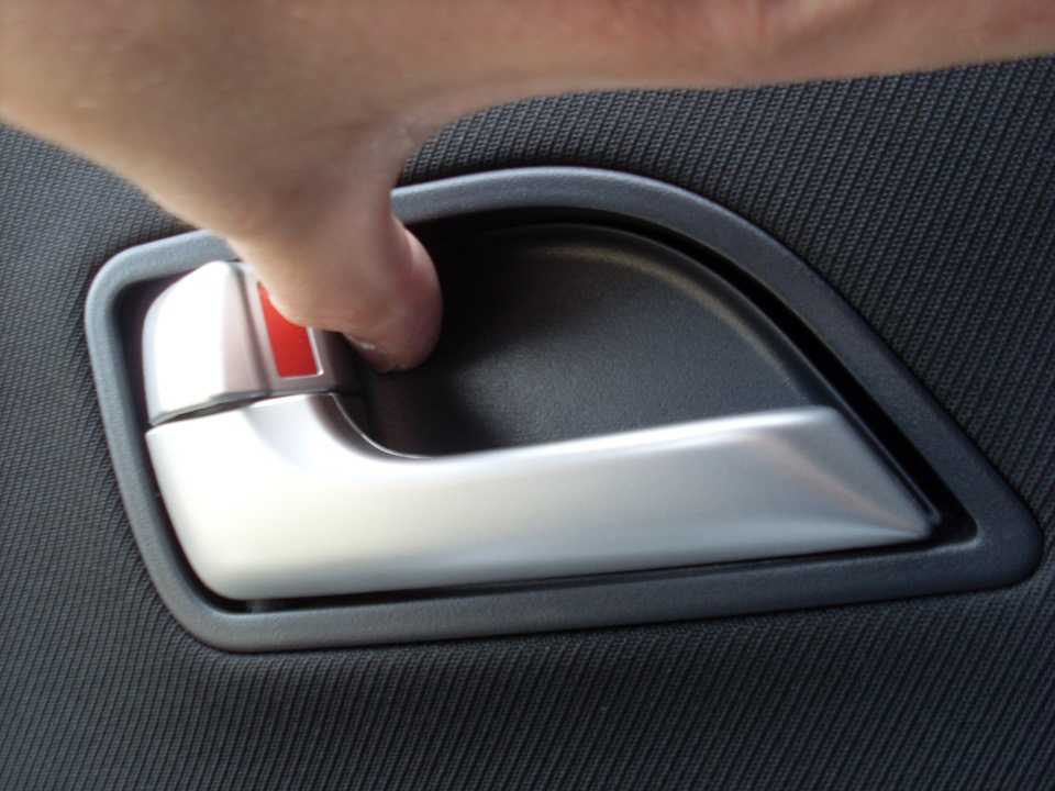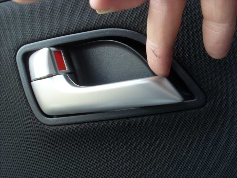 Этим крючком я смог подцепить накладку, просунув крючок в маленькую щель у кнопки блокировки двери (место указано стрелкой).
