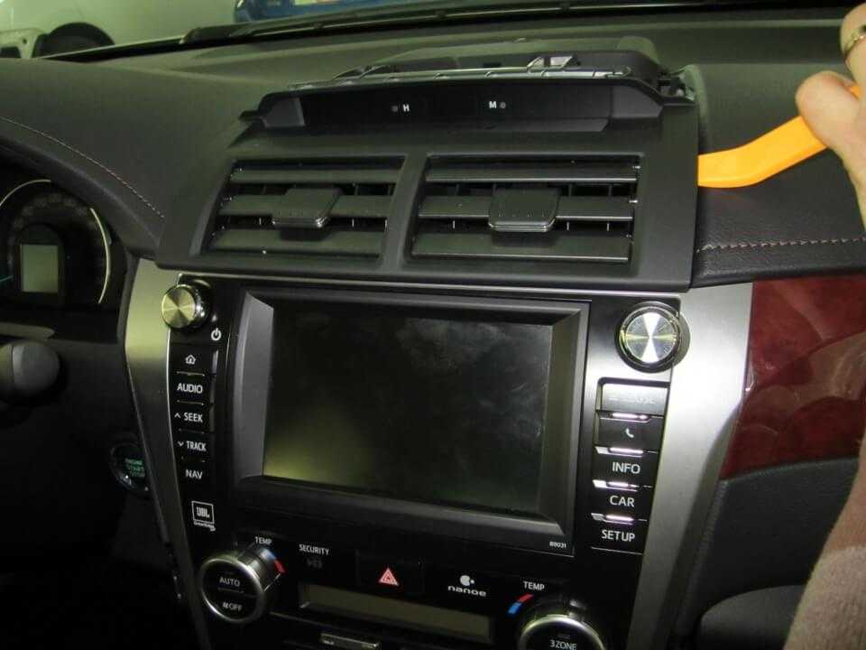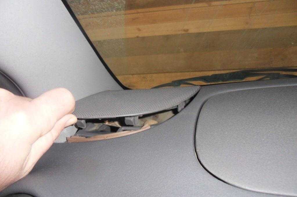 Отщелкиваем закрывающие пукли, расположенные на приборной панели около боковых динамиков.