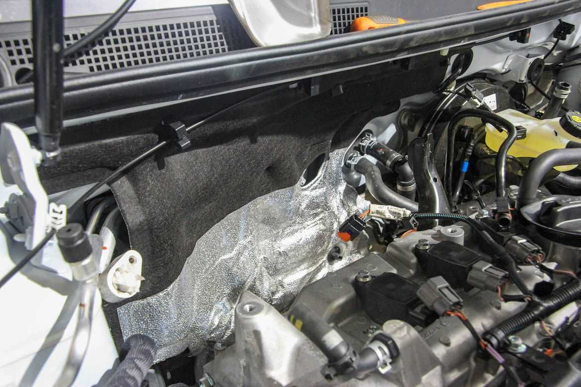 Двигатель со стороны капота отделан добротным слоем теплошумоизоляции, поэтому даже в дизельной машине в салоне достаточно тихо. Капот удерживают два газовых упора — экономить не стали. Похвально!
