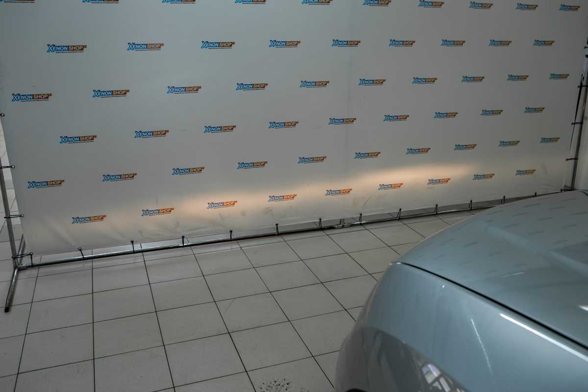 Тщательно полируем фары на автомобиле Рено Латитьюд / Renault Latitude, а также клеим броню на стекла фар.