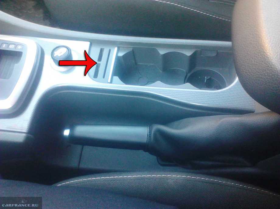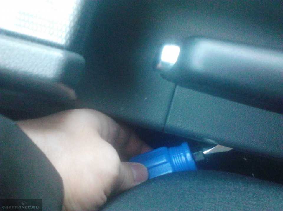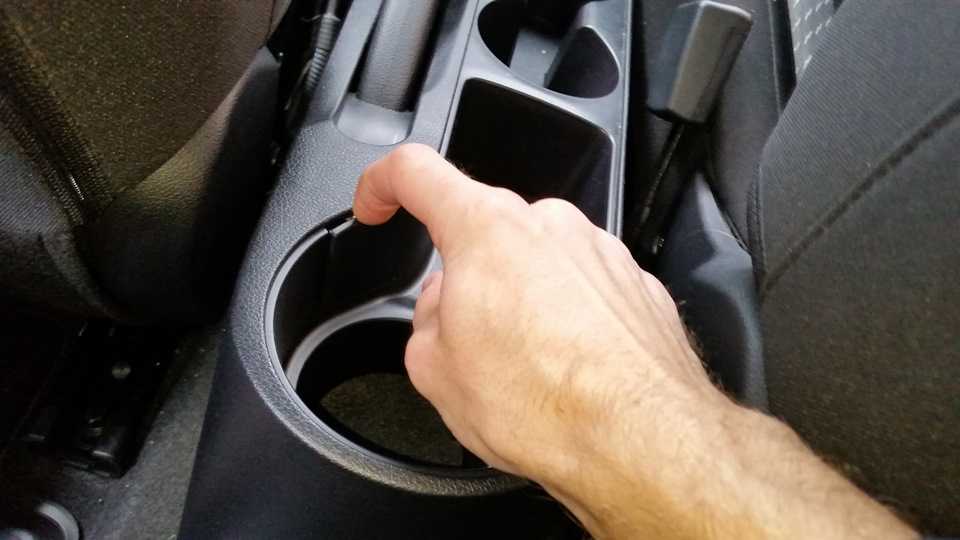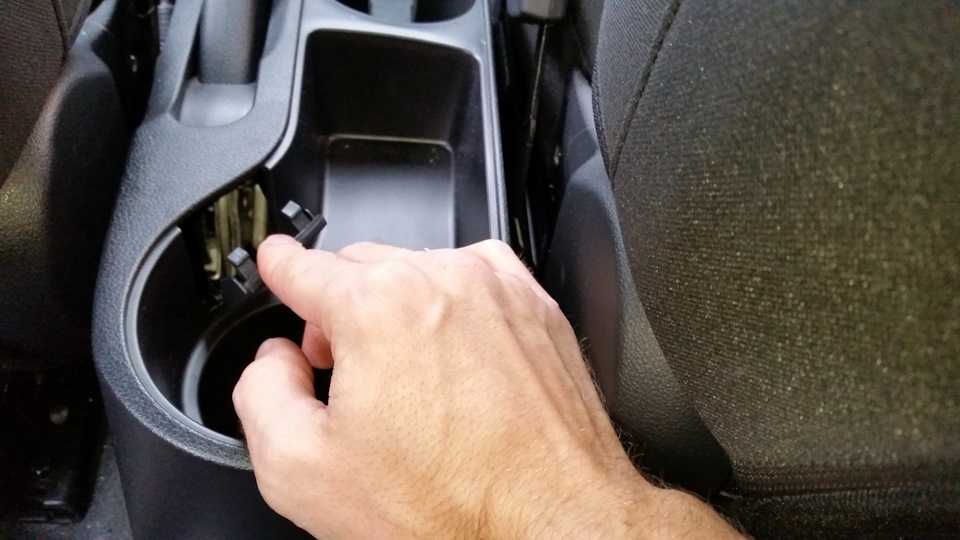 Поддеваем панель и достаем ее из пространства между сидениями.