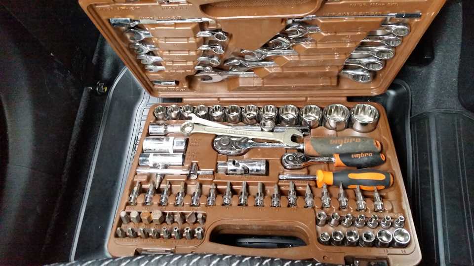 Что понадобится для проведения операции? Несложные познания в автомобильной конструкции или описанная ниже инструкция, торцевая удлинённая головка на 10, в крайнем случае, рожковый ключ, но ним будет трудно добраться до нужного места и инструментарий, чтобы поддеть пластик. Также, потребуется инструмент для поднятия задней части автомобиля.