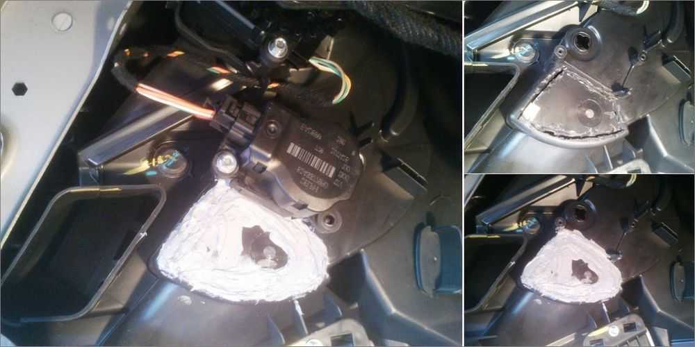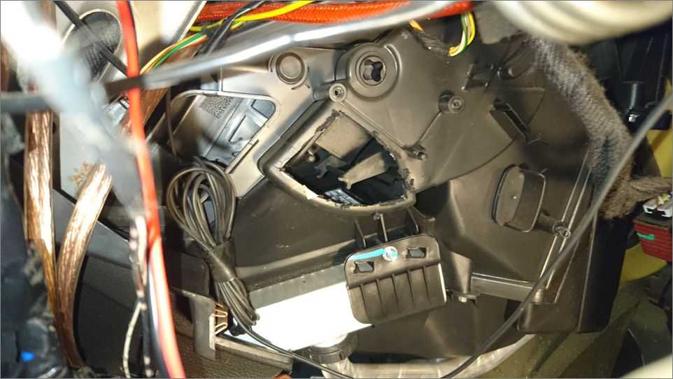 Под боковым кожухом расположен болт крепления подрулевой обшивки. Воздуховод пространства для ног крепится шурупом Демонтируйте воздуховод пространства для ног задних пассажиров. Воздуховод для ног задних пассажиров установлен враспор Отсоедините сервопривод заслонок печки. Для этого необходимо выкрутить два шурупа. Привод заслонки установлен непосредственно на корпусе печки Вырежьте стенку печки с помощью дрели и ножа. Нужно просто подключить его непосредственно к аккумулятору.