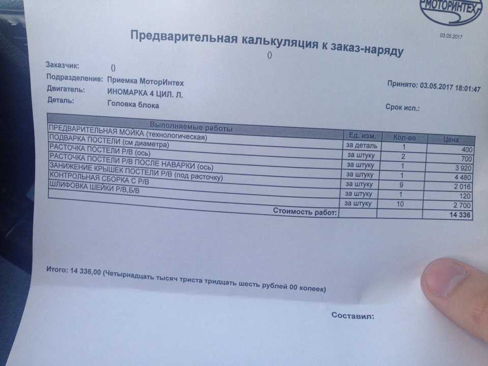 Хотел бы выразить благодарность сотрудникам ООО «МоторИнтех» за качественную работу, в частности Мастеру-приемщику Юрию за уважительное отношение к клиентам. За неделю они выполнили всю работу по восстановлению постелей, как и обещали. Вышло мне все это в 13тыс, а рабочая б/у ГБЦ стоит около 50 тысяч.