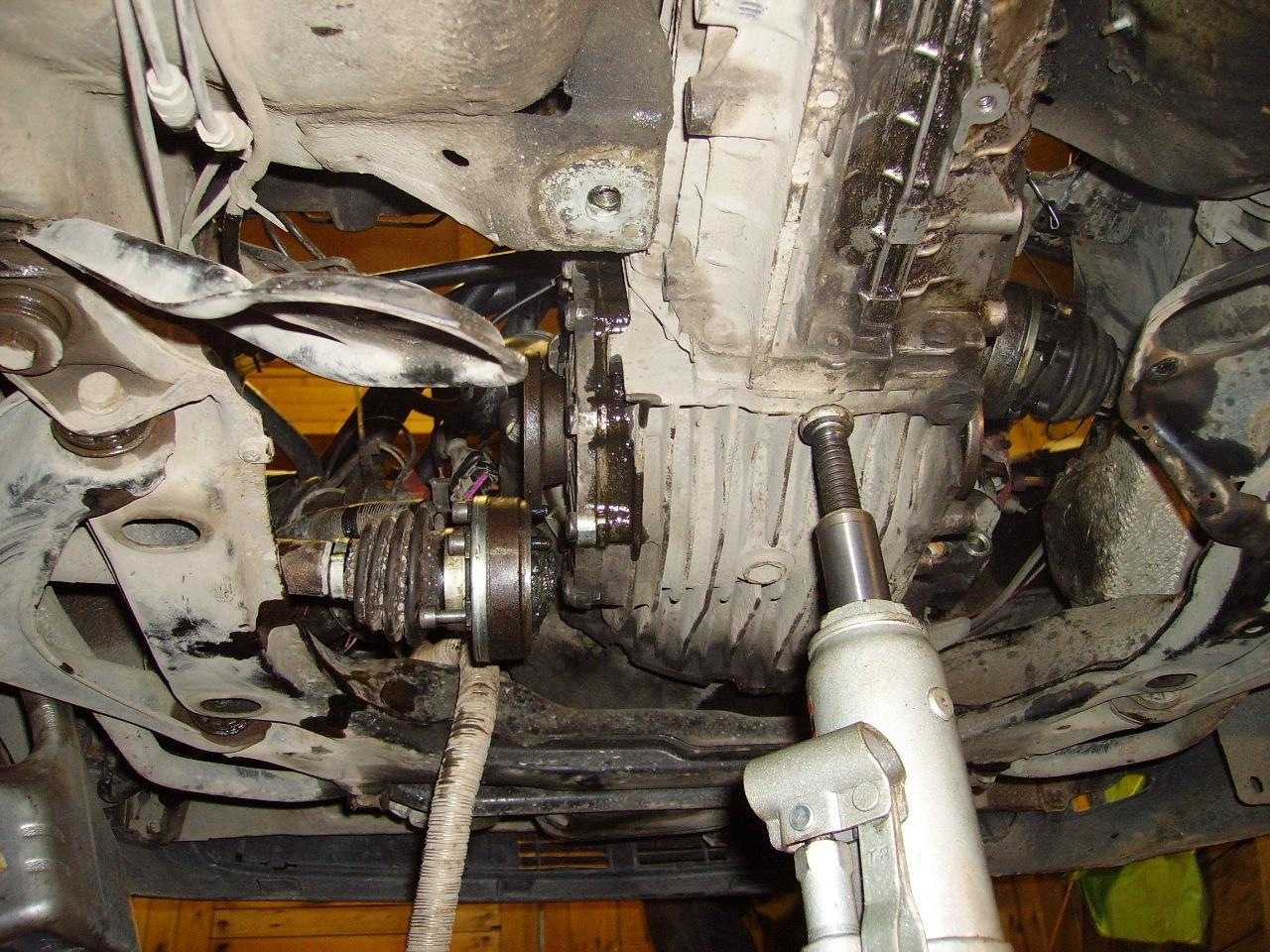 Выкрутил все болты. Незадолго до снятия поставили домкрат. Привязал карданные валы проволокой, чтобы не мешала.