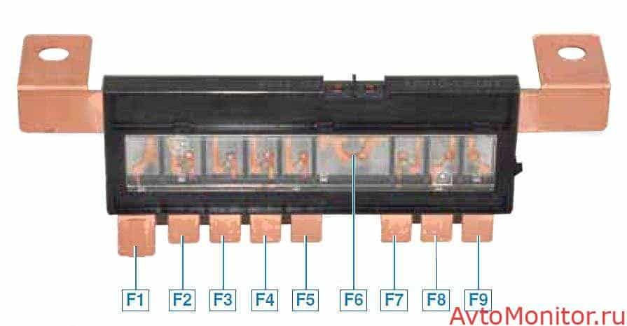 Предохранители и реле в нем выполняют управление работой приборов и защиту электроцепей аудиосистемы, прикуривателя, управления системой безопасности, аварийной сигнализации, лампами освещения и т.п