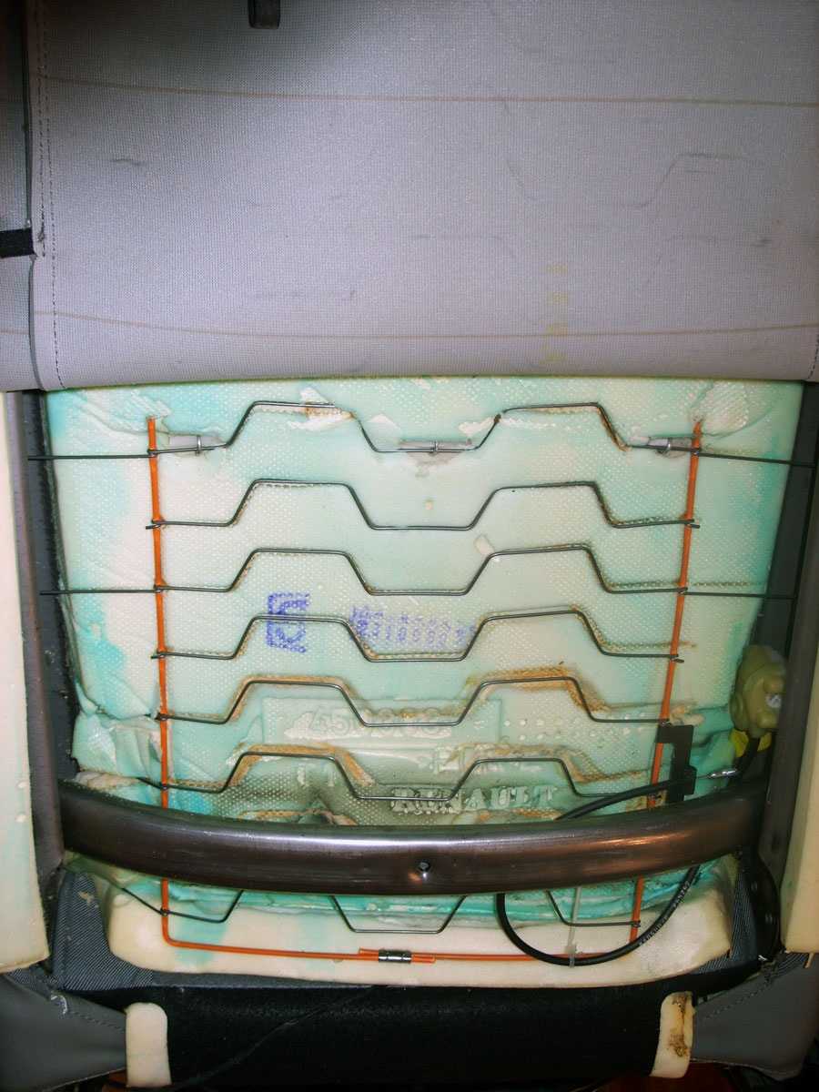 - после проведения ремонта и отделения подушки от спинки необходимо снять обивку для последующей замены нитей подогрева, вышедших из строя;