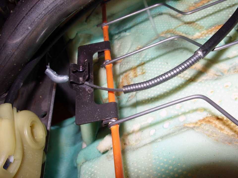 Когда все сняли как на фото — ищем. Вариантов поломки обычно два. Срывается резьба у на самом регуляторе , тогда его только менять. Другой, наиболее частый вариант — ломается фиксатор тросика , как на фото ниже.