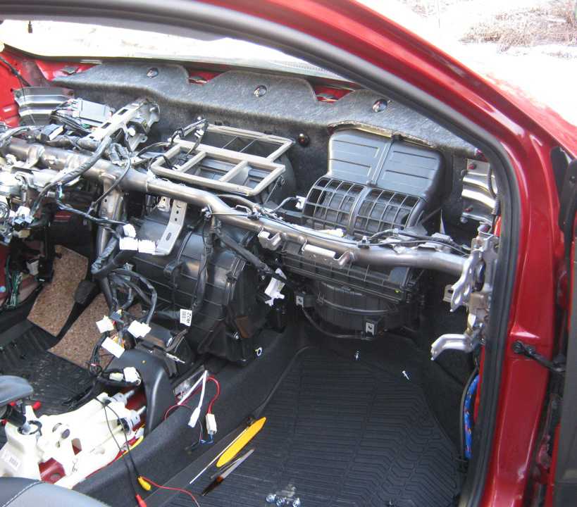 Работу проводим для замены панели приборов, жгута проводов панели и элементов системы отопления, вентиляции и кондиционирования воздуха.