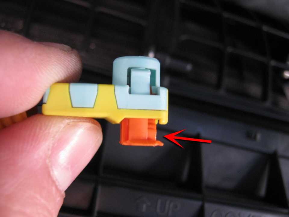 Чтобы снять разъем, нужно вытянуть оранжевый фиксатор и отсоединить разъем.