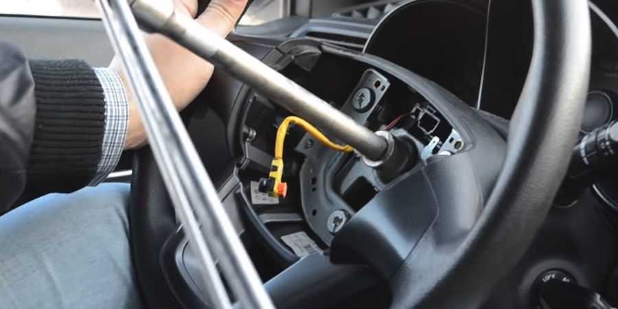 «Головкой» на 22 ключа-баллонника отвинчивается рулевое колесо, которое крепится гайкой посередине. Руль снимается плавно, без рывков и толчков, при необходимости лёгкими движениями раскачивается из стороны в сторону, а гайка до конца ни в коем случае не откручивается.
