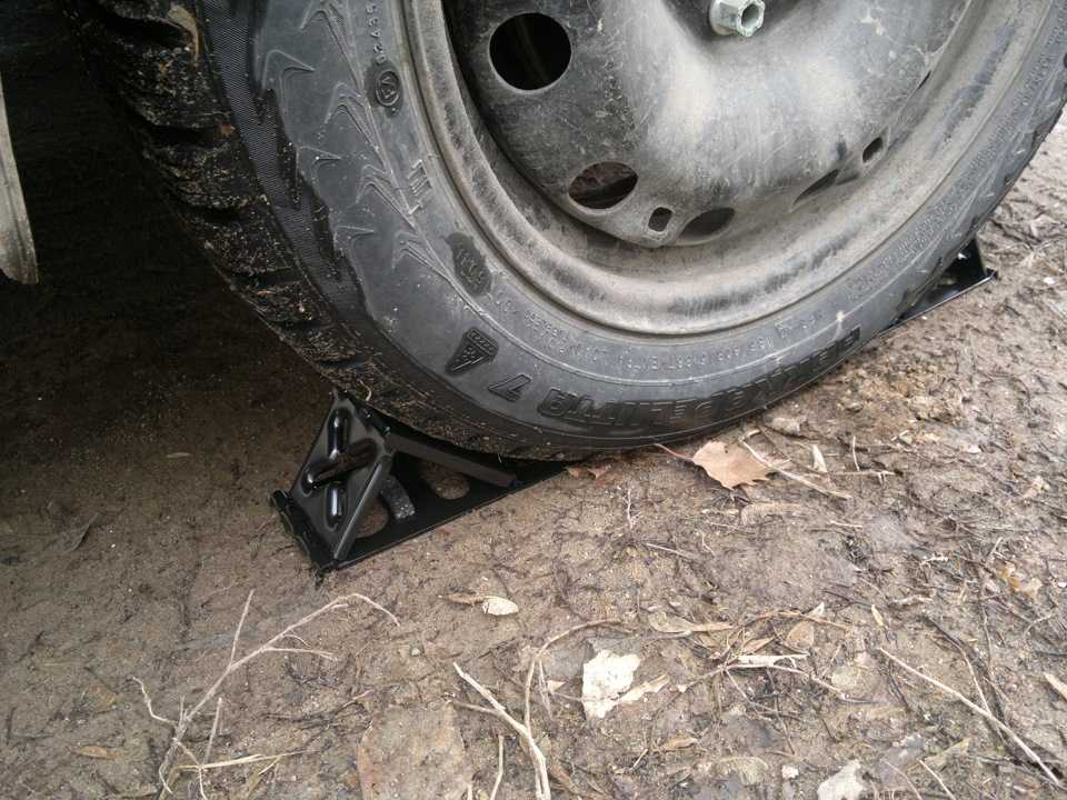 - надёжно зафиксируйте авто (поставьте упоры под колёса);