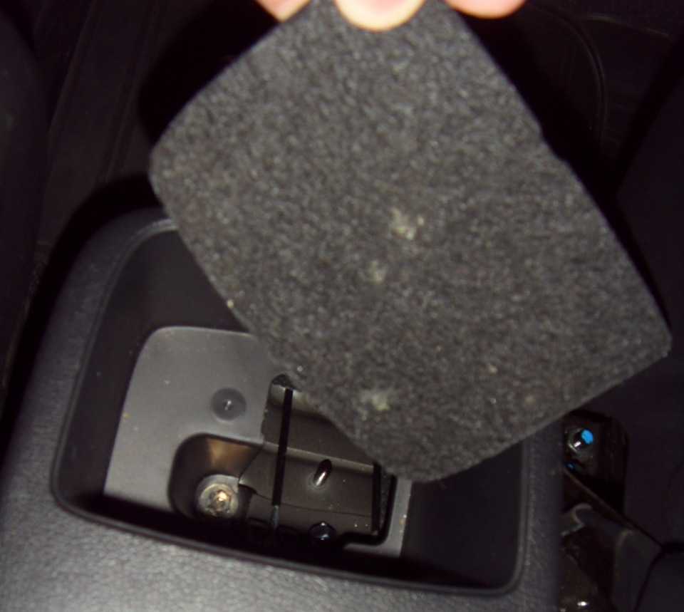 - при помощи отвёртки снимите накладку в тоннеле пола;