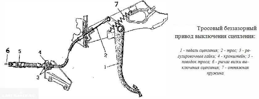 - Затем залезьте в салон авто и отсоедините трос непосредственно от педали сцепления. Извлеките трос.