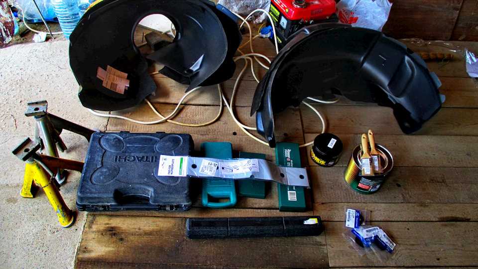 На передних крыльях локеры можно устанавливать прямо поверх уже имеющихся заводских щитков. Сзади щитки лучше снять. Прямо перед началом монтажа необходимо будет обработать крылья антикоррозийной мастикой и тщательно вымыть технические арки.