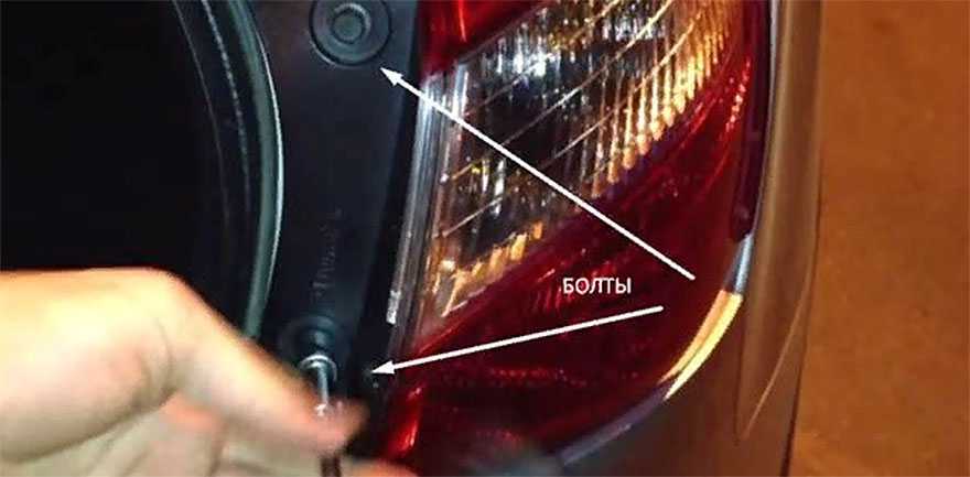 Откройте багажник, оцените конструкцию фары. Рядом с устройством, в небольшом углублении, можно увидеть пару болтов, фиксирующих блок. Болты следует открутить.