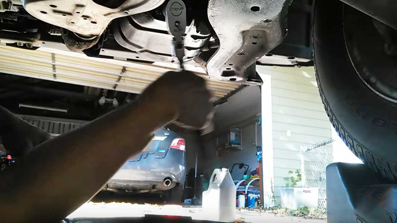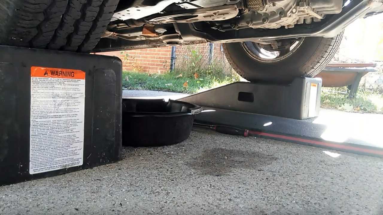 3. Ставим под машину заранее подготовленную емкость для отработанного масла.