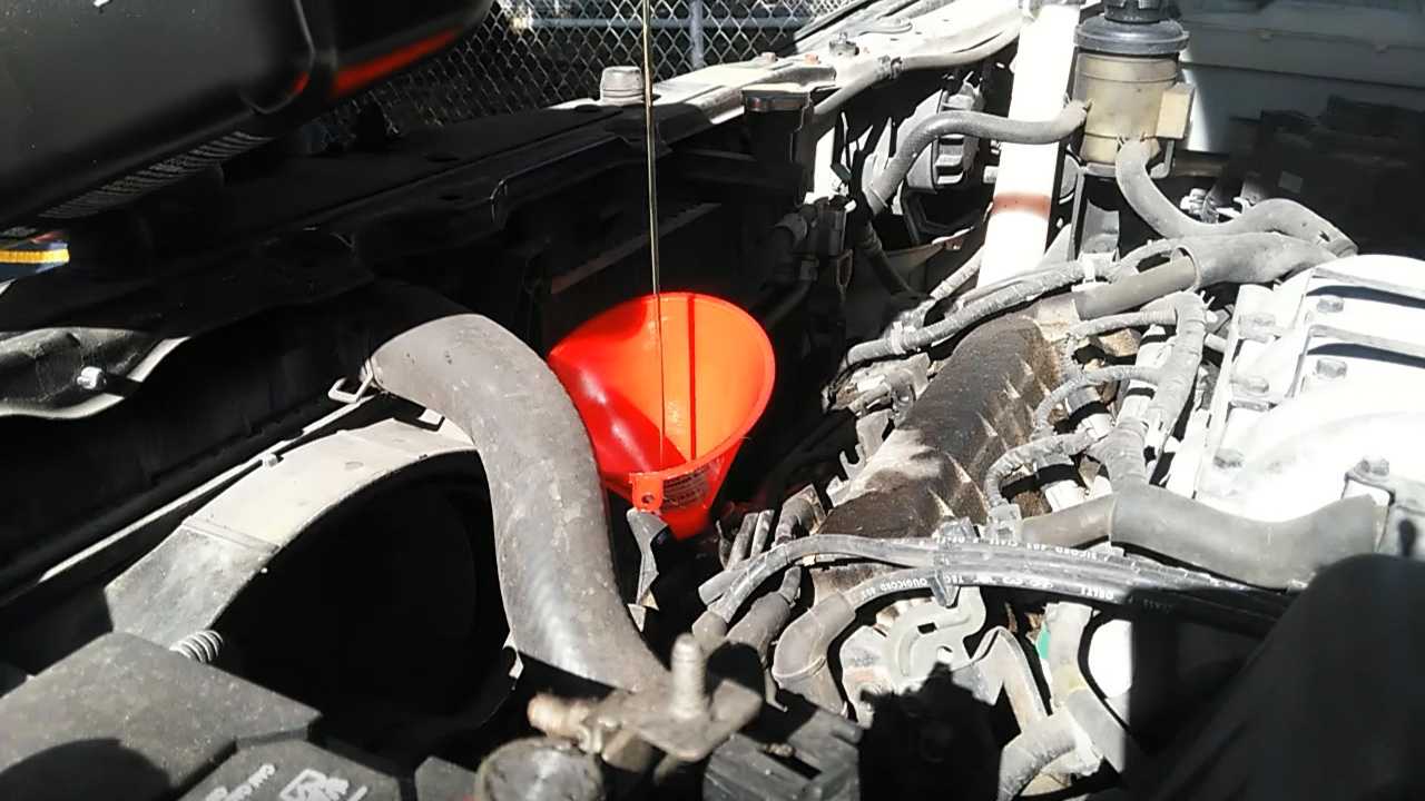 18. Ставим воронку в заливную горловину двигателя, заливаем масло.