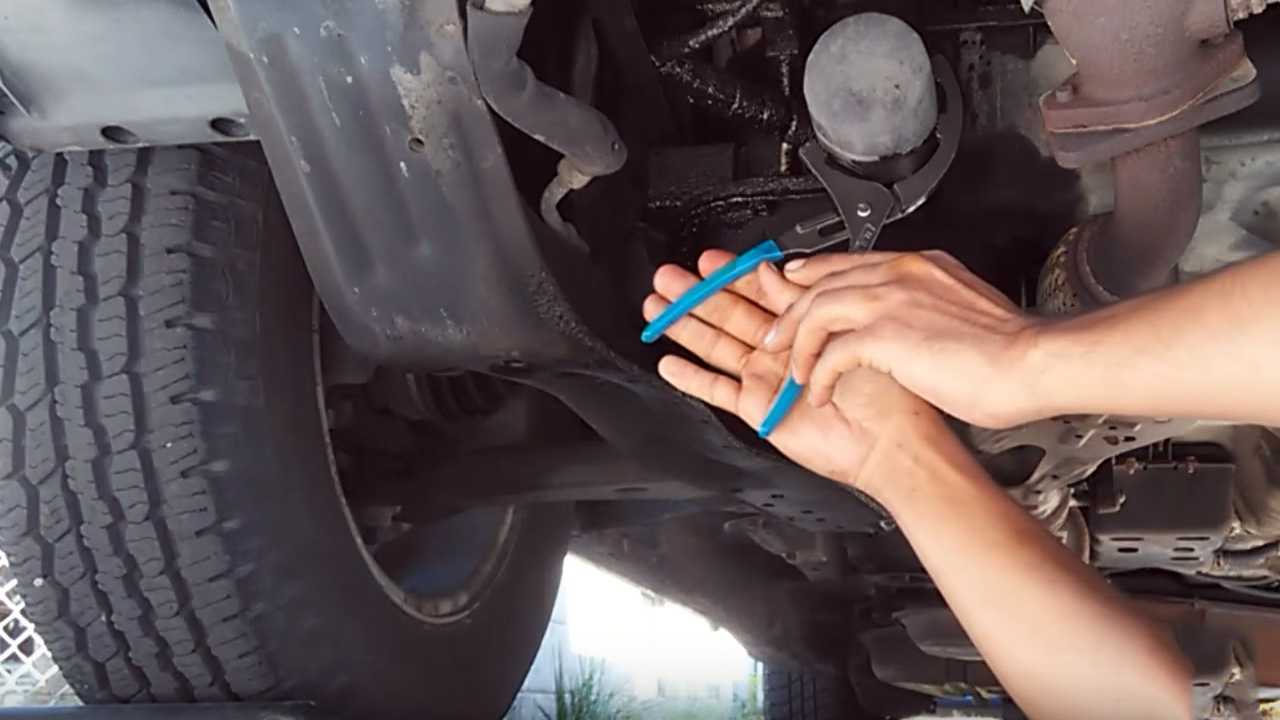 12. Будьте осторожны, так как при снятии фильтра может вытекать масло, поэтому заранее подставьте под него емкость.