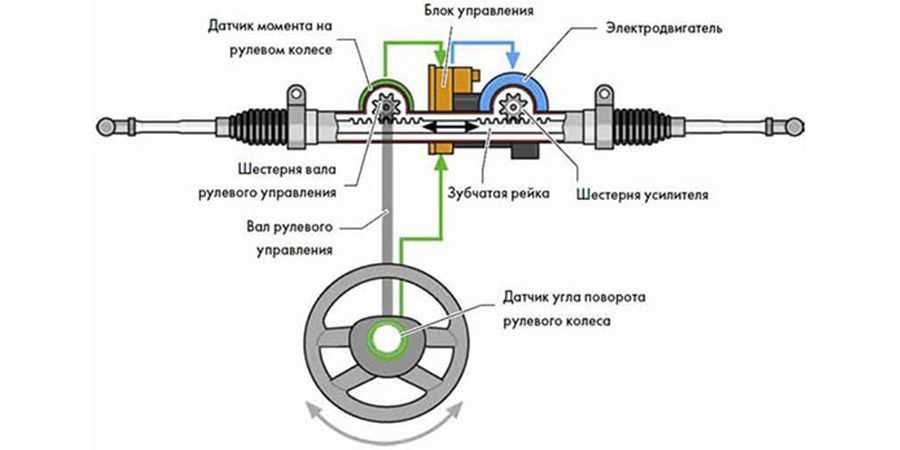 - Электрический усилитель (ЭУР). На замену гидравлики установлен электрический мотор. Это одни из самых дорогих реек, которые не подвержены морозам. Они имеют высокую эффективность. Отсутствие различных сальников и рабочих жидкостей существенно упрощает эксплуатацию узла.