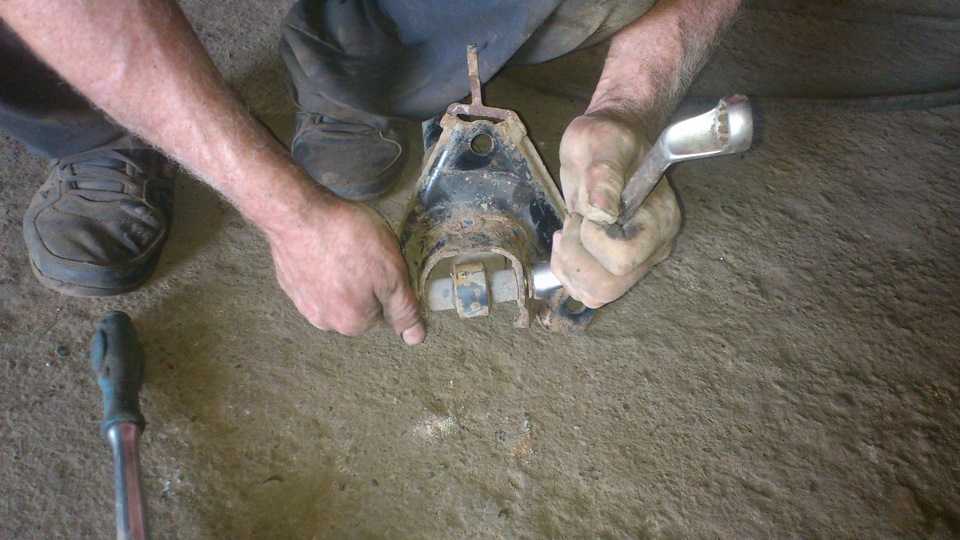 Нам понадобятся шайбы большого размера в комплекте с длинным болтом или тисками. Проставка из старой обоймы подшипника позволит установить новую деталь на место.