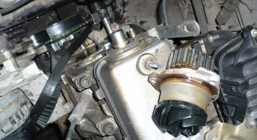 Обязательно осмотрите блок двигателя в месте прилегания корпуса и саму помпу. Запотевания, незначительный потек ОЖ из дренажного отверстия еще не значит, что помпу следует менять. При обнаружении значительной утечки постарайтесь точно определить место негерметичности. Если течь только в месте прилегания корпуса к блоку двигателя, вероятнее всего, устранить неисправность можно без замены помпы. Достаточно будет нанести герметик и установить новую прокладку.
