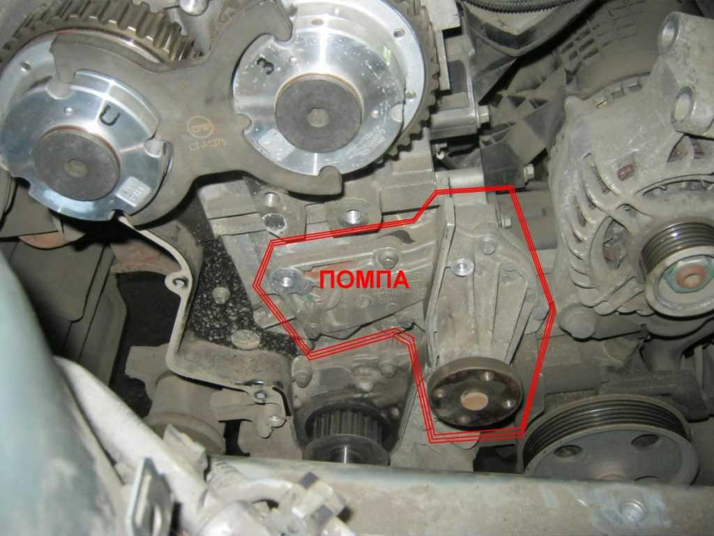 Помпа в конструкции мотора расположена с блоке ГРМ, ГУР и генератора