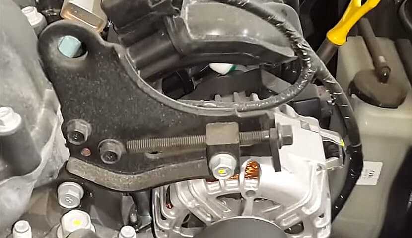 - При помощи ключа прокрутить натяжной ролик, чтобы ослабить ремень привода вспомогательных агрегатов.