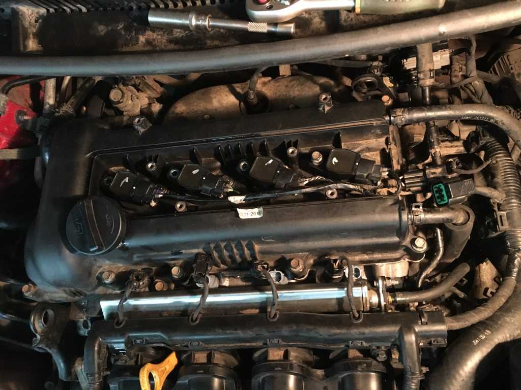 Демонтируется впускной и выпускной коллекторы, топливная рампа с форсунками, катушки зажигания