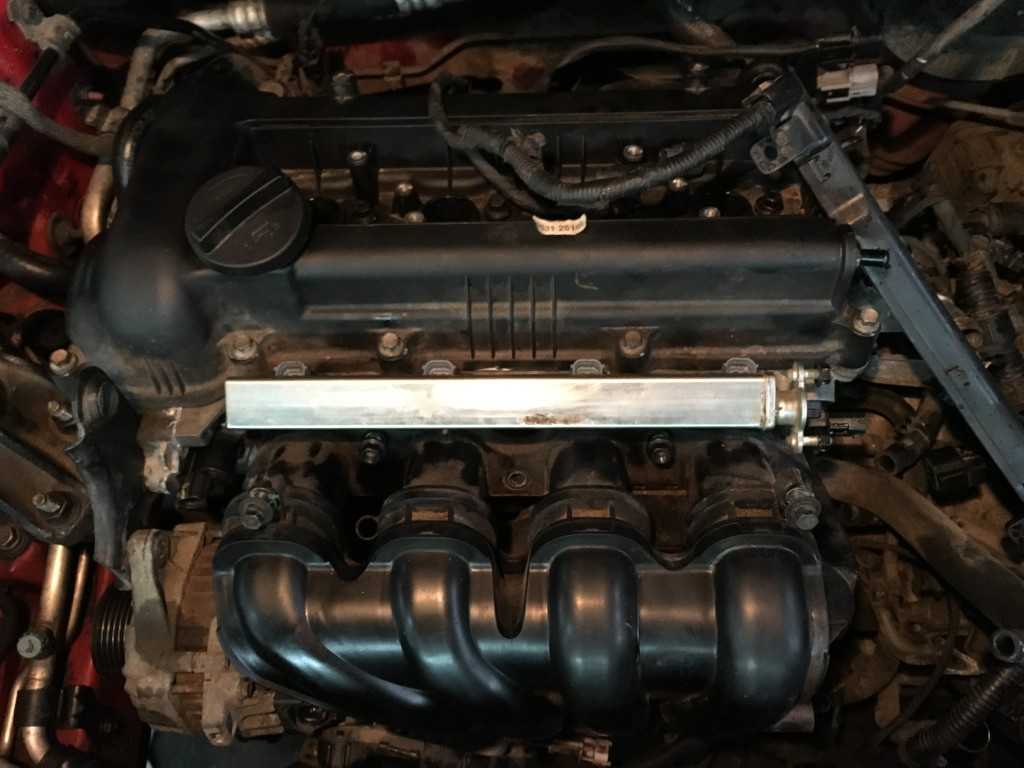 Производится установка крышки клапанного механизма, устанавливаются впускной и выпускной коллекторы, с заменой прокладок, топливная рампа с форсунками.