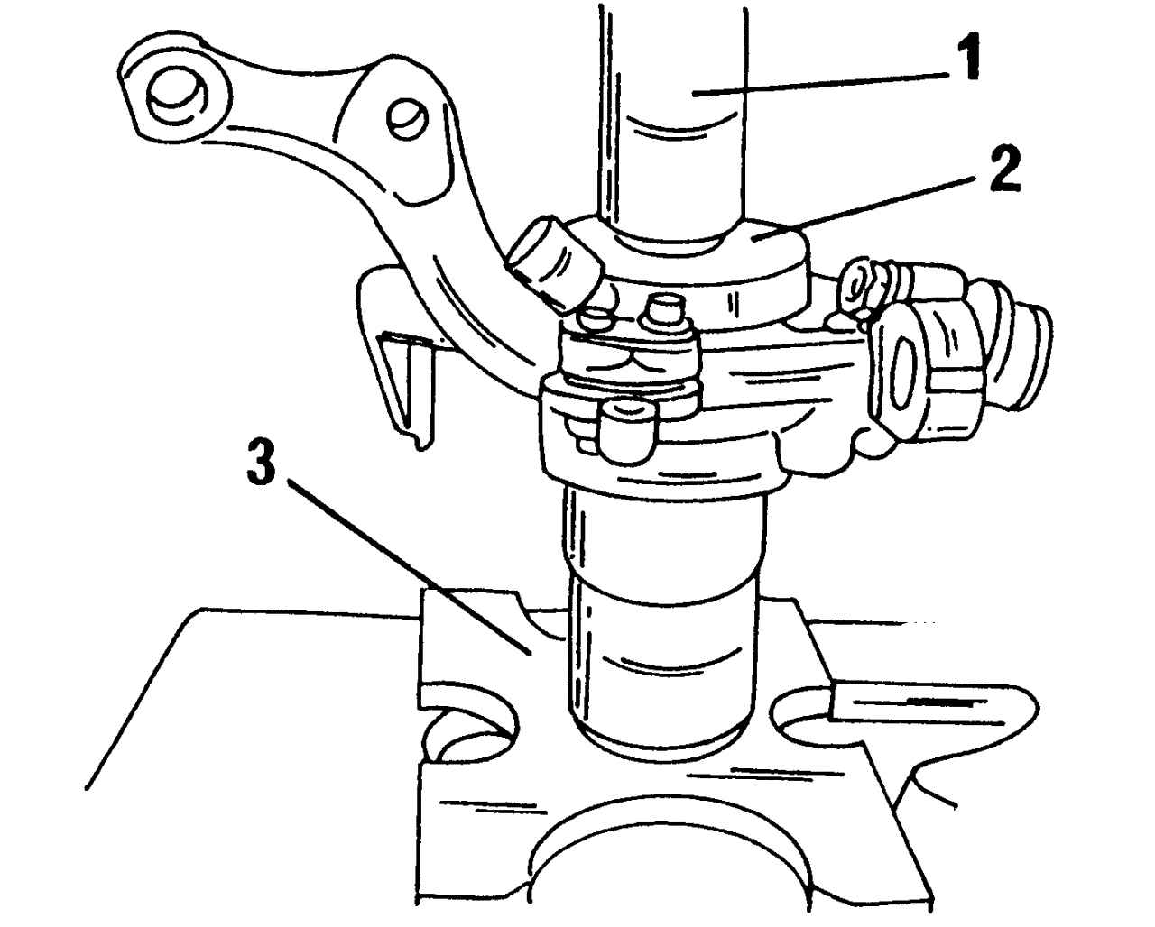 — вставить необходимый инструмент между обеими плоскостями на нижней стороне амортизаторной стойки и установить по одной линии отверстия под болты;