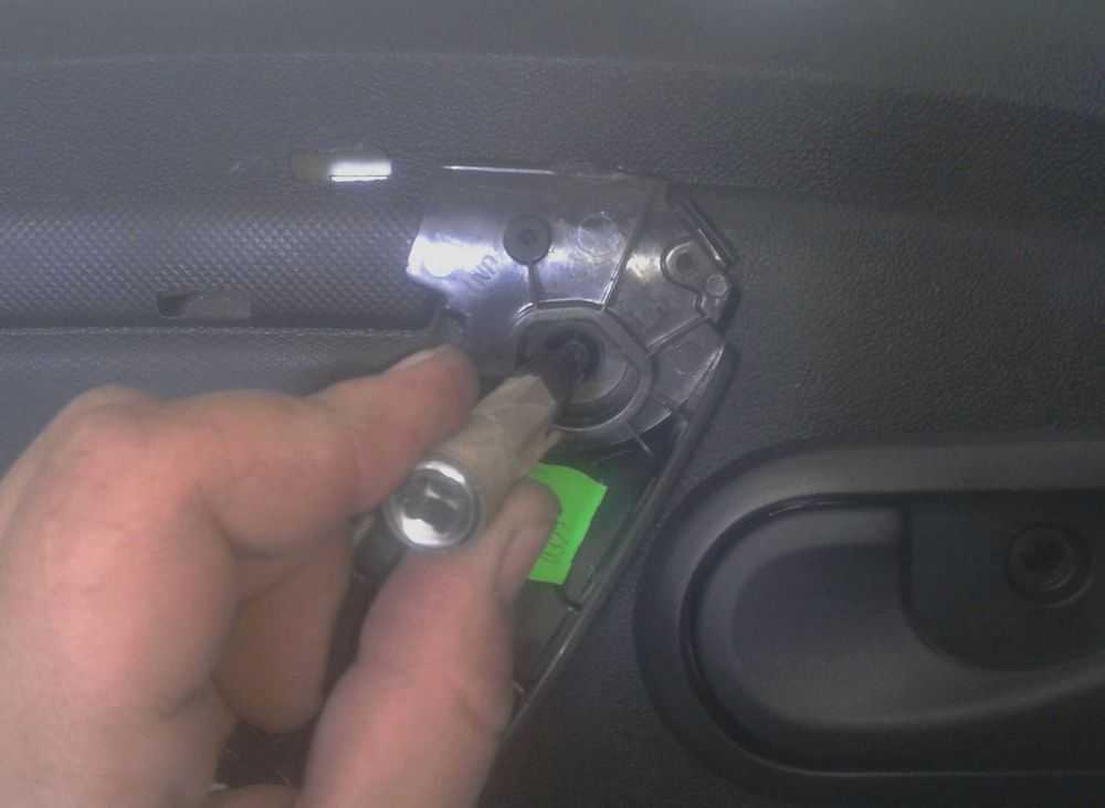 Первым делом попробуйте снять рукоять стеклоподъёмника, если она есть. Точки крепления обшивки (карты) аналогичны тем, что уже рассмотрены. Их число равно трём.