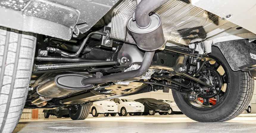 Тяговые и тормозные силы при езде управляются за счет рычагов подвески, которые объединяются через шаровые опоры с поворотными кулаками, а через сайлентблоки с передним подрамником. Подрамник жестко крепится к кузову при помощи четырех болтов.