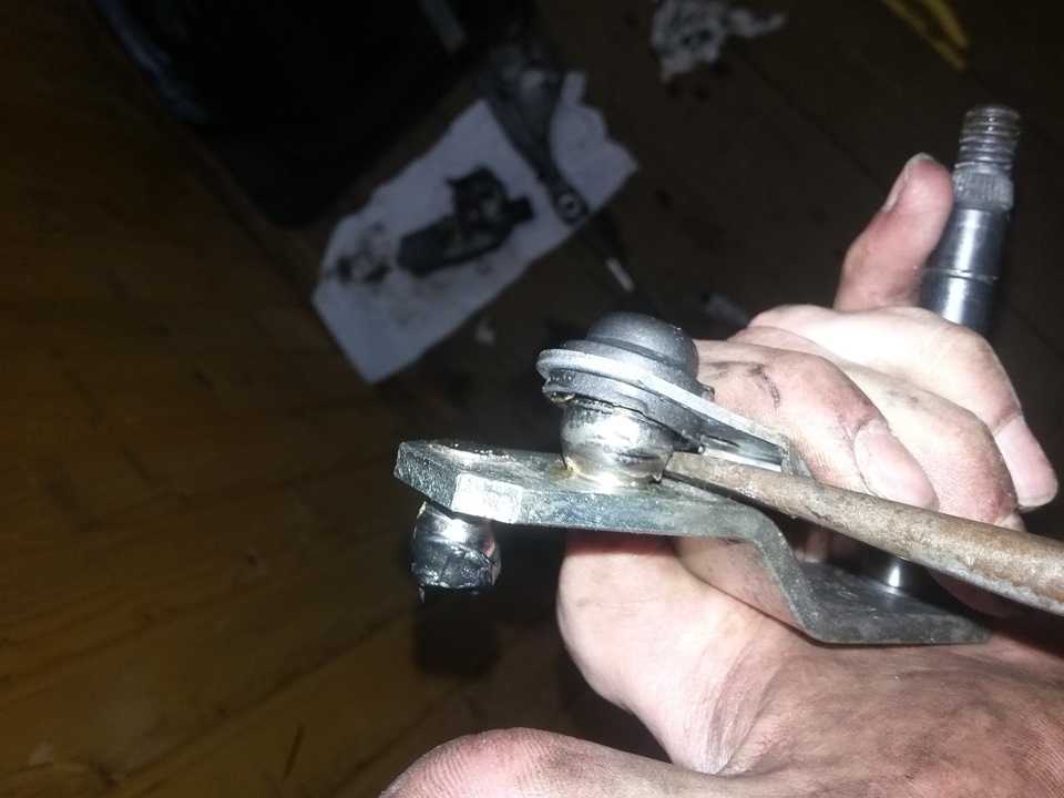 — Вытаскиваем часть трапеции с шпонок.— Откручиваем тягу закрепленную на моторе гайкой на 13.