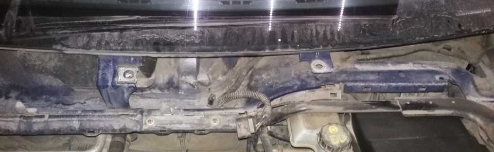 — Откручиваем дворники— Снимаем железные скобы с верхней пластмассовой защиты (с Жабы)— Снимаем верхнюю защиту (Жабу)