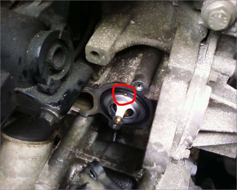 При снятии термостата будьте внимательны, поскольку под ним осталось небольшое количество антифриза, который может вытечь на детали мотора.